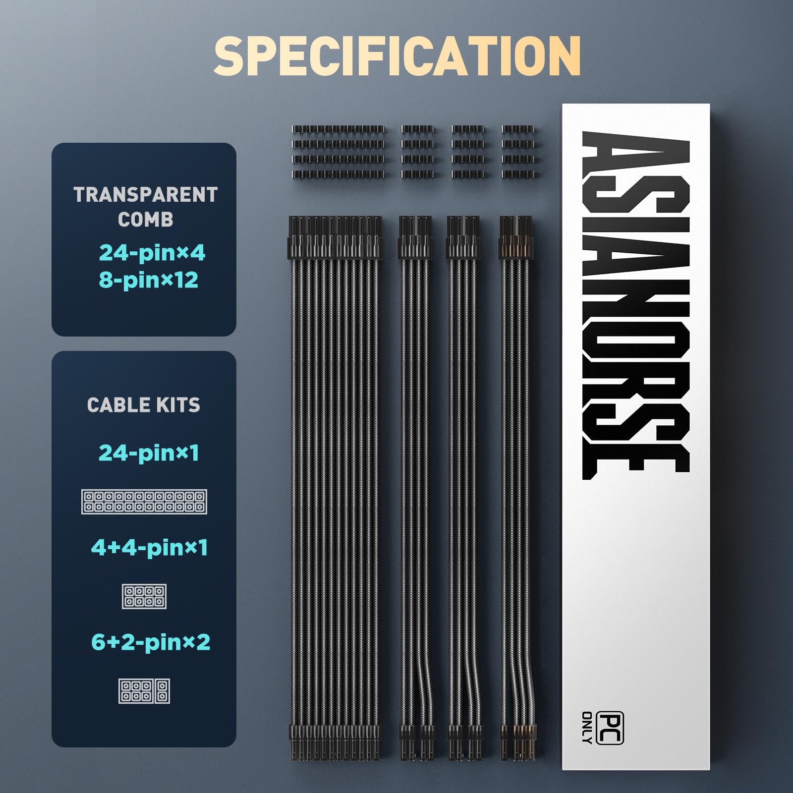 - Stable Silver-Plated PCIe Connector: PC power cables feature a high-quality silver-plated connector design, significantly enhancing the stability and reliability of signal transmission. For users seeking the ultimate gaming experience and graphics processing performance, AsiaHorse power sleeved cables are the optimal choice