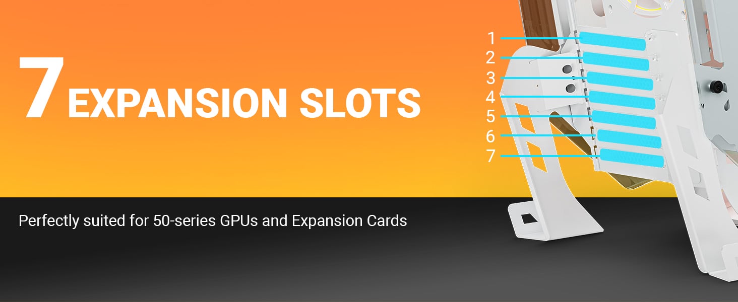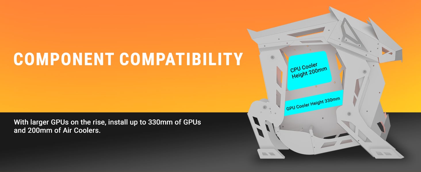 - All-Around Airflow – The chassis is designed with open spaces and an open-frame structure, allowing for unobstructed airflow to maintain a consistent and efficient cooling environment for your components.