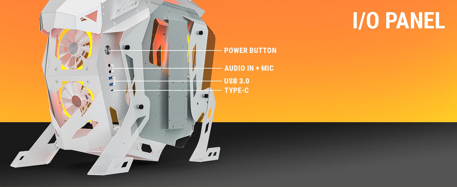 - Aggressive & Bold Aesthetics – Designed with sharp angles, asymmetrical elements, and futuristic contours, the chassis redefines traditional PC case styling.