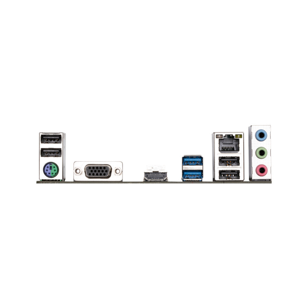 | Back Panel Connectors | 1 x PS/2 keyboard/mouse port 1 x D-Sub port 1 x HDMI port 2 x USB 3.2 Gen 1 ports 4 x USB 2.0/1.1 ports 1 x RJ-45 port 3 x audio jacks |